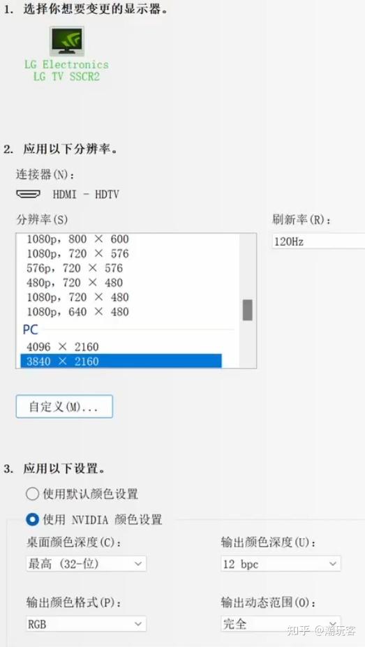 实测连接PC能够支持4K 120Hz 12Bit RGB全范围输出。