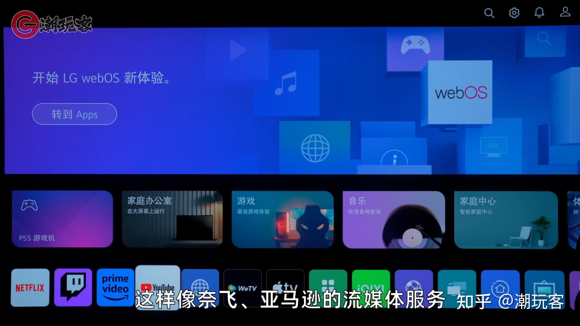 电视自带的系统是LG自家的WebOS,和传统的安卓TV不同,不过操作体验还不错,可以接键盘鼠标操作,当然用LG自家的动感遥控器就更愉快了,遥控器正中央的确定键有滚轮功能,上下滚动即可唤出光标,接着只需要手轻微晃动便可移动光标,不过这个灵敏度有些高,用户需要一段时间适应这种操作,一旦适应后用起来就非常方便了,输账户密码的时候终于不用痛苦地按方向键了。顺便它的远场语音功能是由当贝提供的技术支持,所以易用性也很不错。不过WebOS并不支持安装第三方APP,只能通过自带的应用商店下载更新APP,国区商店提供的APP数量还算可以,大部分国内的流媒体比如华数、芒果、B站、爱奇艺、优酷、西瓜都有,没有腾讯视频,但有些是较老的不支持4K的版本,而且也没有Web浏览器,我看前几代好像还有的,这下连办公区的微软365都开不了。