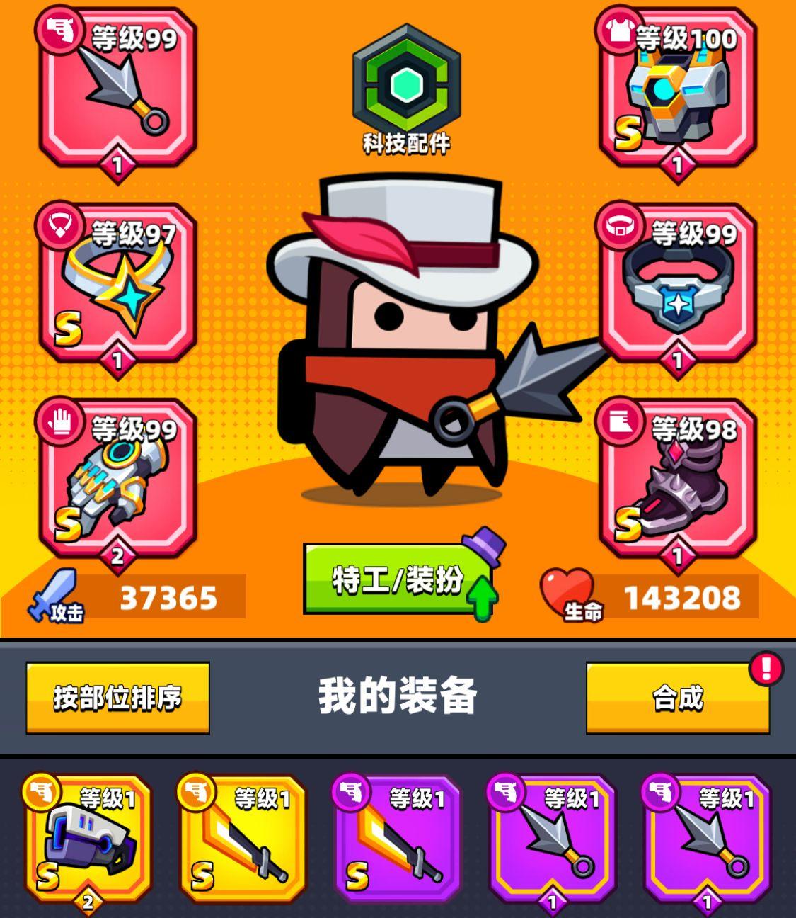 - 每日挑战打一次,解锁科技配件(装备界面里)