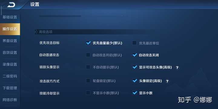 优先攻击目标要选择血量最少,方便雅典娜收割,自动攻击关闭有助于用普攻取消后摇,显示可攻击的头像和头像锁定是雅典娜的进阶操作,在后文的高阶篇中也会讲到。冷却显示小数或者不显示取决于个人的习惯了。