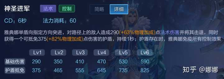 解析:雅典娜的小突进技能,这个小位移不能穿墙,但是可以获得一个小的护盾,在这一秒内如果护盾没有被打破雅典娜就是免控状态,并且我们看升级面板可以发现,这个技能升级的性价比极高,伤害量和护盾伤害是成倍的提高。