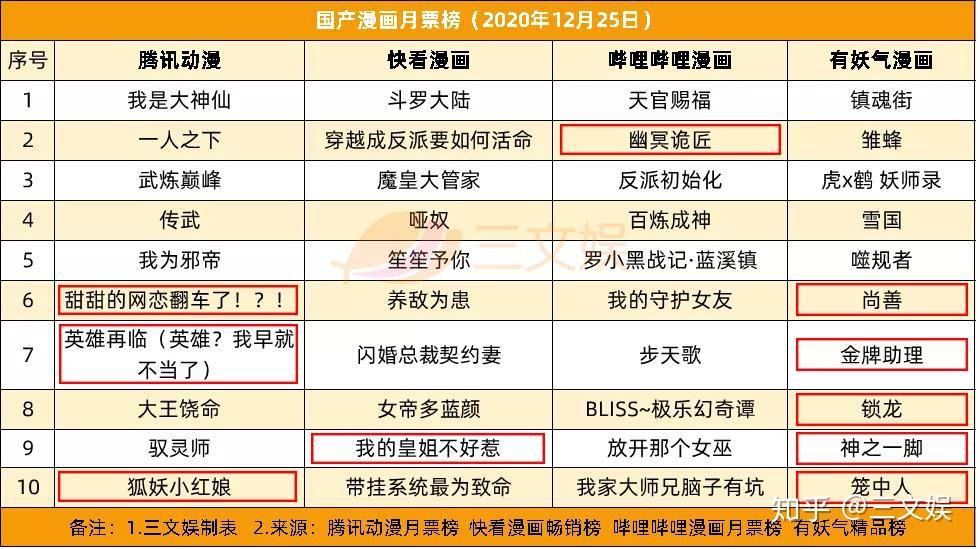 相比上周,本周有3部新晋榜单作品。其中,《狐妖小红娘》漫画上榜可能是受动画《狐妖小红娘·沐天城篇》的反哺, 本周月票数6314张 ,排名第十。