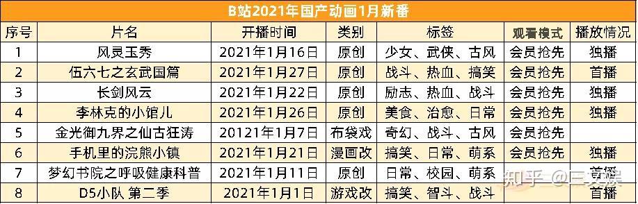 2)B站发布2021年1月新番导视:8部国创+39部日番