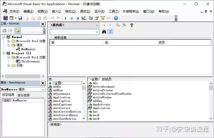同样,其余获得方法可在Word-宏编辑器-对象浏览器中查询。