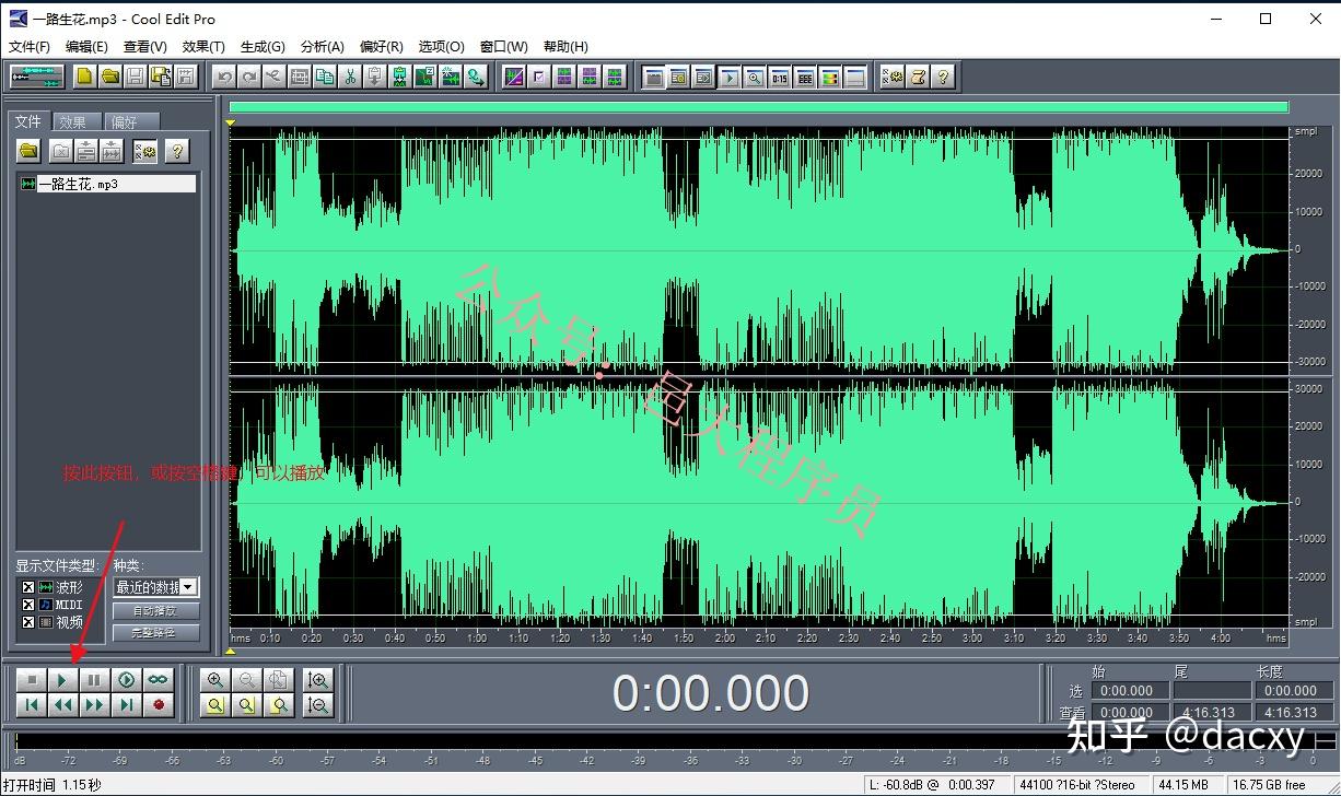 2、打开音乐后,界面是这样的。可以按空格键播放。