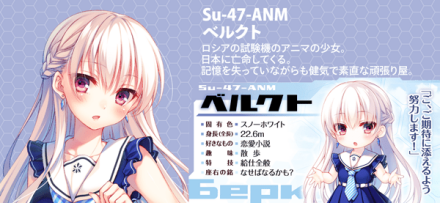 有着一头粉红色的长发,慧曾说她是个桃红色头发有些靠不住的战斗机,是个不善表达感情、态度冷淡,但却又很贪吃,一旦闹别扭就会真正生气发火,比人类更像人类的少女;在上海逃难与慧相遇;是个问题连连的阿尼玛,不知为何会在启动后2~3个小时后会产生意识障碍,最后发现和慧在一同时不会产生这样的问题,也在小松空袭时带慧坐上子体,事后免于被报废的命运,第二卷在海鸟岛空战中交由慧来驾驶,自己则负责火控,能将飞弹锁定后方的目标,第三卷参与上海登陆战,第四卷接收叛逃到日本的贝儿库特。