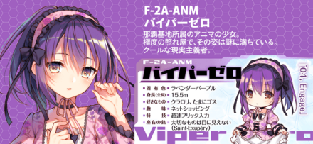 日本的阿尼玛,来自三泽基地,外表清纯可爱的大家闺秀般少女。然而,似乎给人一种表里不一的感觉……子体为