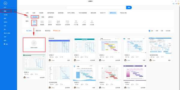 第一, 打开软件,选择“新建>项目管理>甘特图>新建空白画布”;