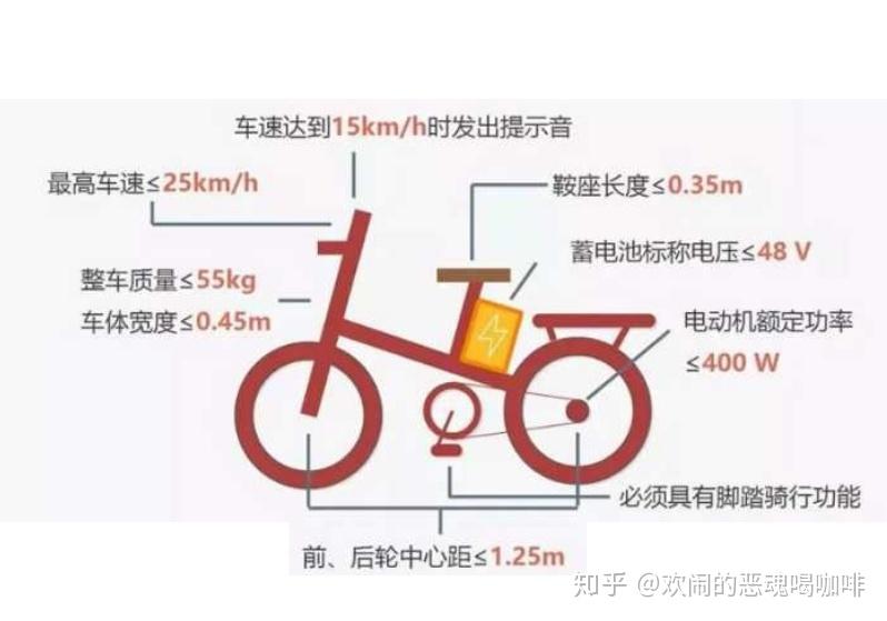 电动自行车除了上面说的电池电压,速度和重量限制,还包括功率不超过400瓦,宽度不超过0.45米等要求。最重要的一句话,看本地规定什么电动自行车能上牌! 买的时候一定要符合你们本地的上牌型号!