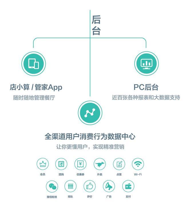 融合了移动互联网和大数据的智能餐厅,将成为新餐饮的新模式。以大数据思维作为经营参考论证,将智能收银系统作为餐厅的中枢,让餐厅跟随时代趋势保持在线,将平台和用户连接到餐厅,帮助餐厅实现效率的全面提升。