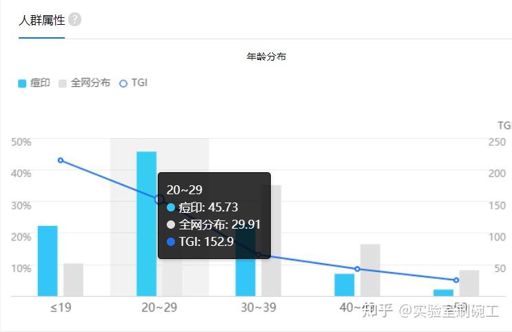 为此我还特地去搜了关于痘印的相关数据,发现不仅是问我如何去痘印的男生多,而且从大数据来看,有痘印困扰的大多是男性,且年龄集中在30岁之前。