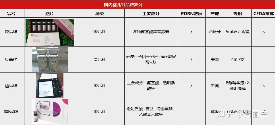 市面上称婴儿针的产品达10余种,多个品牌还有不同型号,价格也有高有低,目前国内合法合规 含PDRN真正意义上的婴儿针 、 三文鱼针 屈指可数,质量相对可靠,不过,要想使用婴儿针达到最佳效果,除了产品质量本身外,咨询正规医疗美容机构才能真正帮到自己哦。