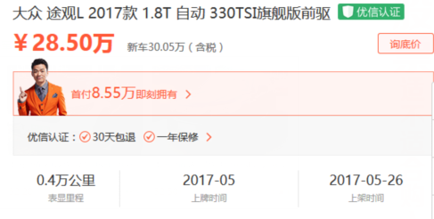 同时上市也在加价的大众途观L,我找了辆仅上牌十几天,公里数更短的。