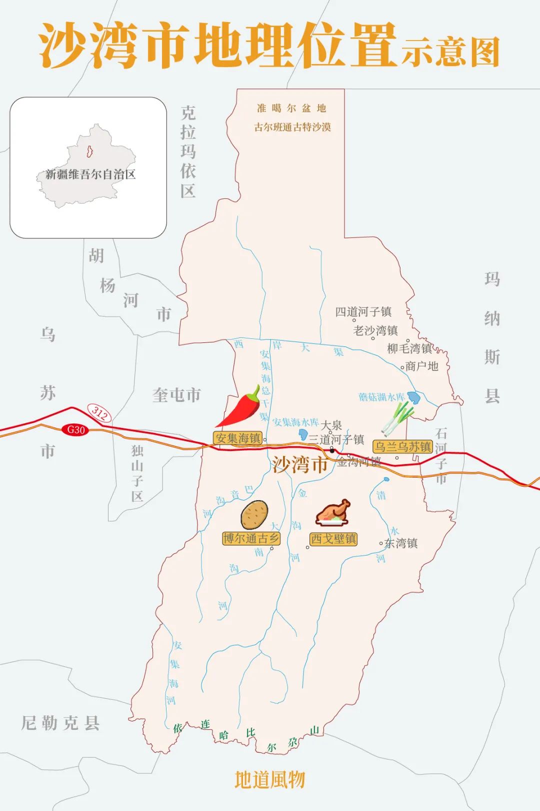 新疆沙湾,被认为是大盘鸡的故乡。