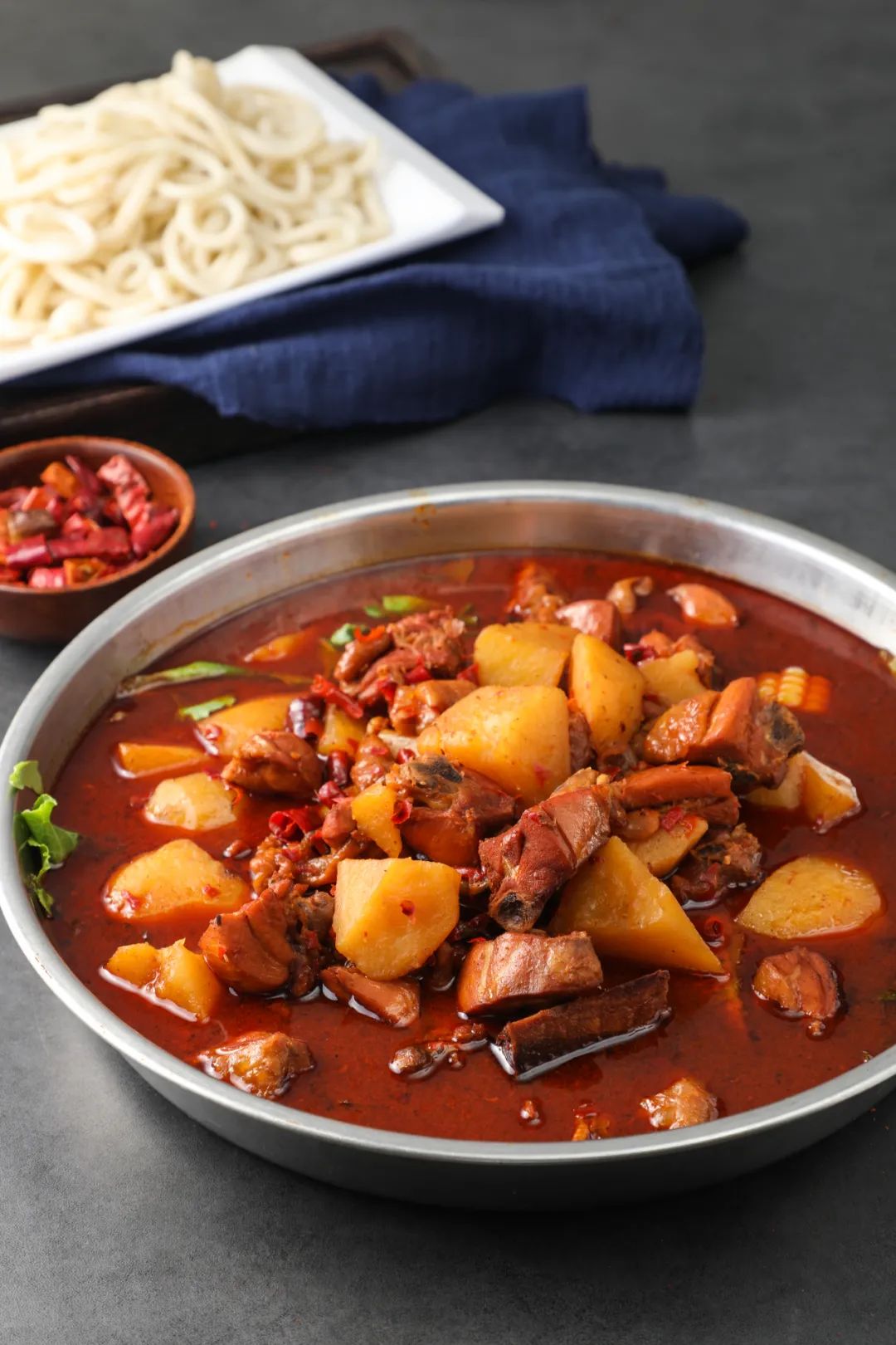 的确,大盘鸡汇集了中国众多省区人民的饮食习惯:新疆人大盘大块的
