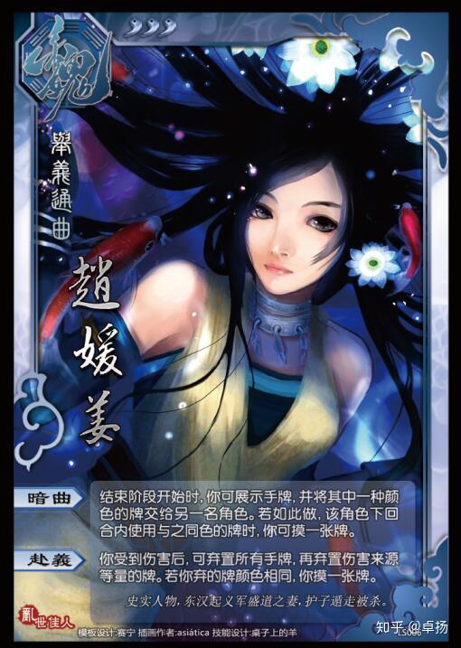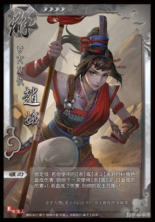 赵娥,老公姓庞,故又叫“庞娥”(三国志大战中就叫庞娥)。后汉书中记载的奇女子女士兵年间人物,西晋傅玄为其作《秦女休行》。她的事迹虽不如王异和徐氏,但她一介平民青史留名,我觉得她算成功了。【制作的时候还没有赵襄,这个插画看着像赵襄,其实这是阵面对决中的女士兵】