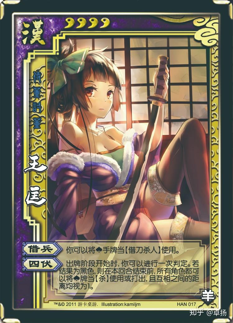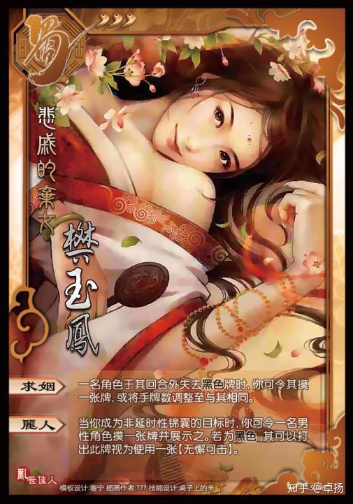 樊玉凤,还记得是谁吗?嘿嘿,就是介绍给赵云而赵云不要不要的那位……《真三国无双》里也有此人,我觉得《三国杀》也可以有。