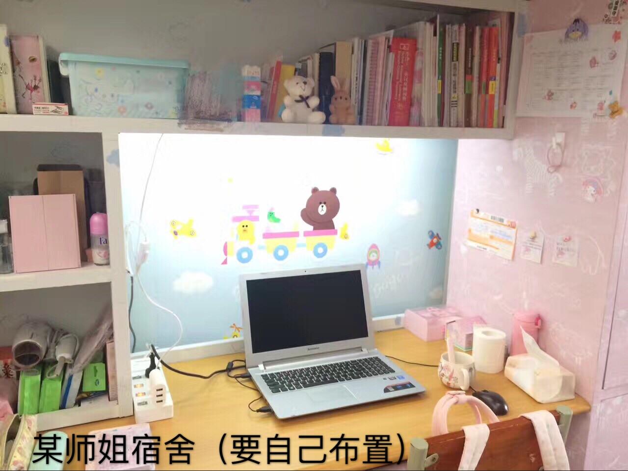 4人宿舍、配空调(自己遥控)、独立卫生间和浴室、上床下桌、Wi-Fi全覆盖~\(≧▽≦)/~、有电梯、宿舍楼下有学院超市、ATM存取款机。洗衣机要自己买。单车什么的可以停在宿舍楼下。