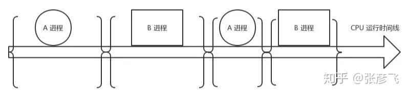 进程是操作系统的伟大发明之一,对应用程序屏蔽了CPU调度、内存管理等硬件细节,而抽象出一个进程的概念,让应用程序专心于实现自己的业务逻辑既可,而且在有限的CPU上可以“同时”进行许多个任务。但是它为用户带来方便的同时,也引入了一些额外的开销。如下图,在进程运行中间的时间里,虽然CPU也在忙于干活,但是却没有完成任何的用户工作,这就是进程机制带来的额外开销。