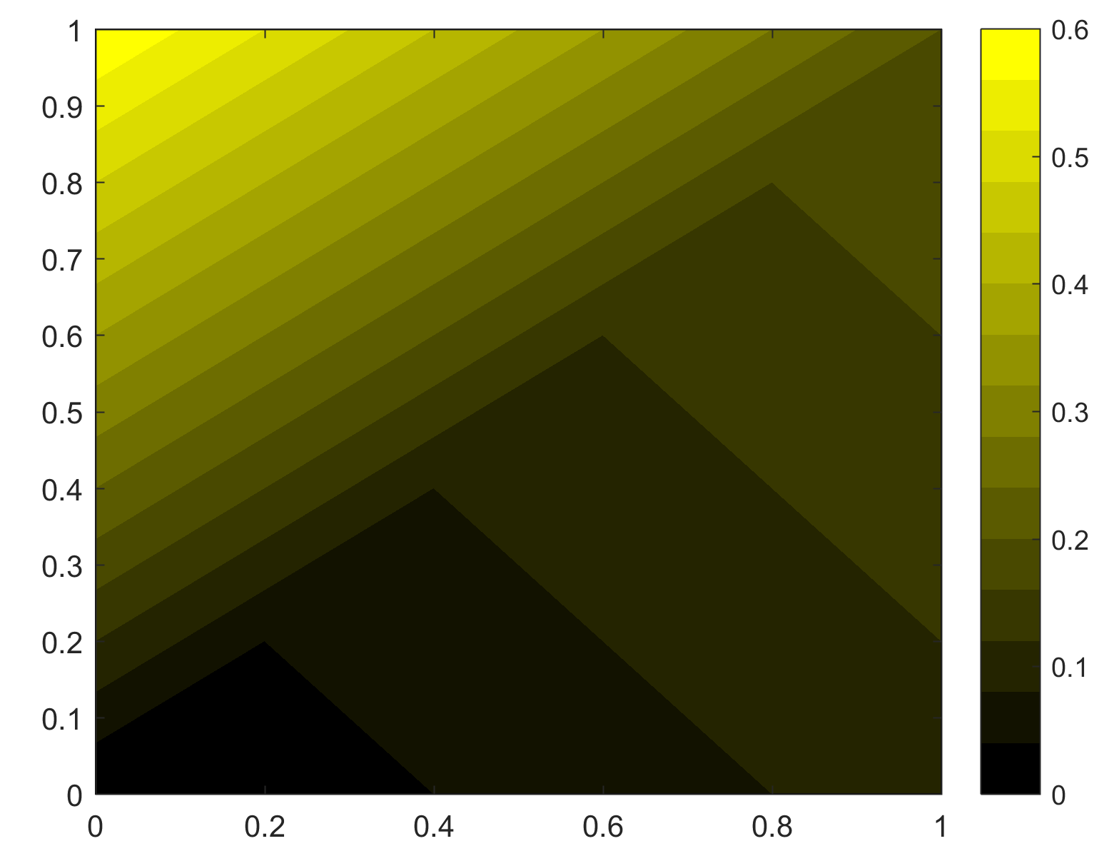 %本例中颜色从[0 0 0] 变化到[1 1 0]