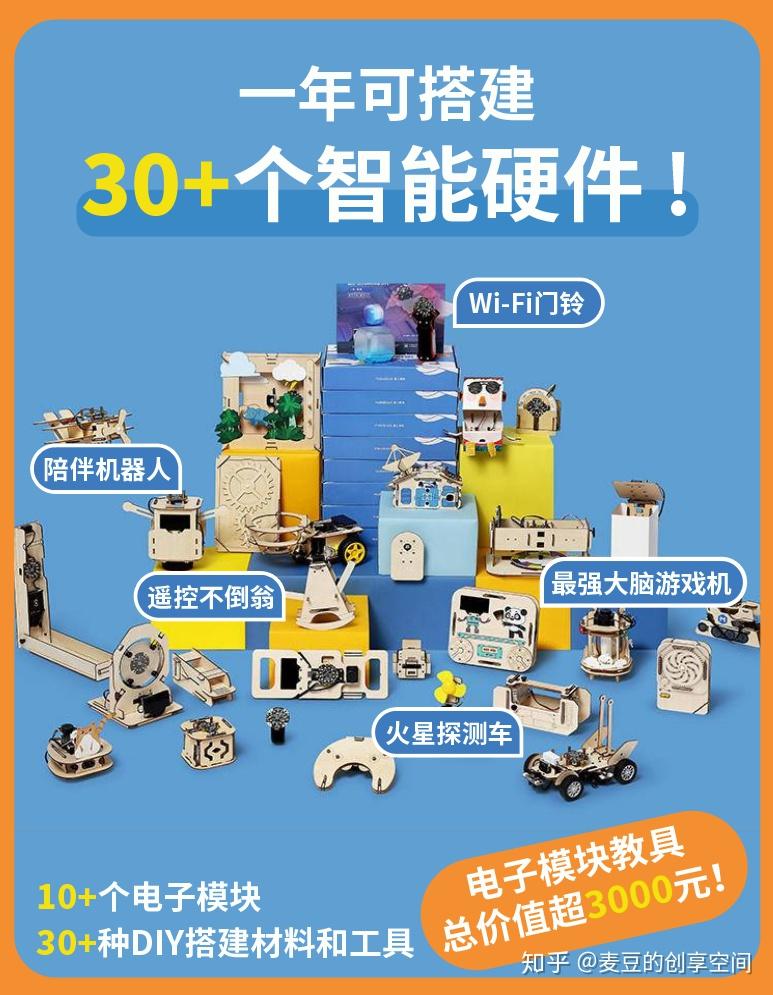 另外依托光环板而打造的造物编程课也是一个值得关注的产品,造物编程课主要控制板就是光环板,然后搭载各类传感器等电子元器件,就可以做成30+的硬件产物,将光环板的作用展示的淋漓尽致,比如可以设置火星探测车、最强大脑游戏机、陪伴机器人等各种前卫又不是乐趣的科学玩具。