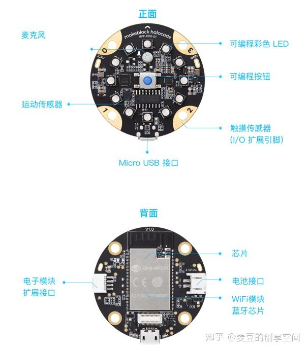 首先从硬件方面,光环板集运动传感器,可编程LED彩灯、可编程按钮、触摸传感器、wifi模块、芯片等元器件于一身。