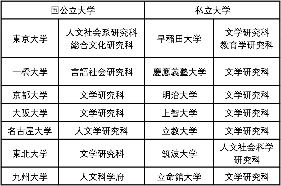关东圈外的话,京都大学,东北大学的文学研究科都相当有名,旧帝大,特别是东大京大东北大的国文学,特别是古典文学,以及历史学研究都相当有名。