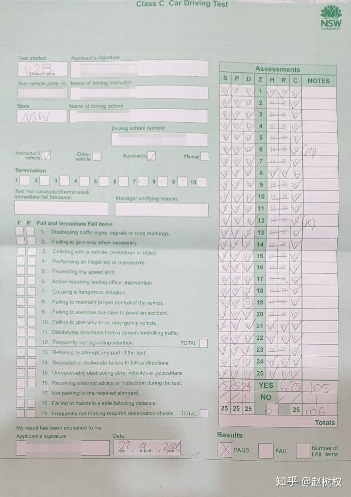 下面这张图是我2020年9月22号的路考结果表格。自己感觉还是非常满意的,这是第二次路考,第一次路考没通过是因为拐弯的时候没有让旁边的大货车先行拐弯,考官认为这是危险情况,大货车拐弯可能会占用两个车道,容易看不到旁边的小车导致剐蹭,直接就给了一个immediate fail。第二次考试就很顺利,选择在周二的中午天气晴朗的时候考的。