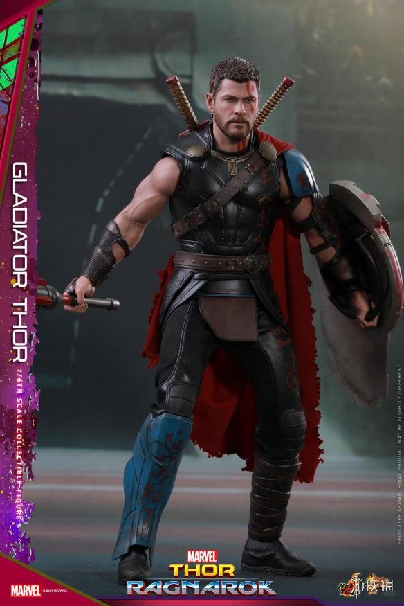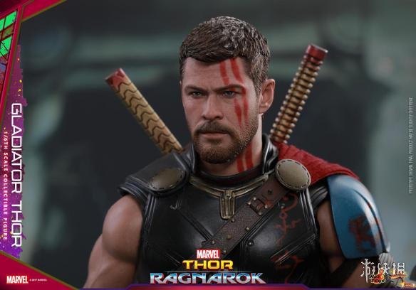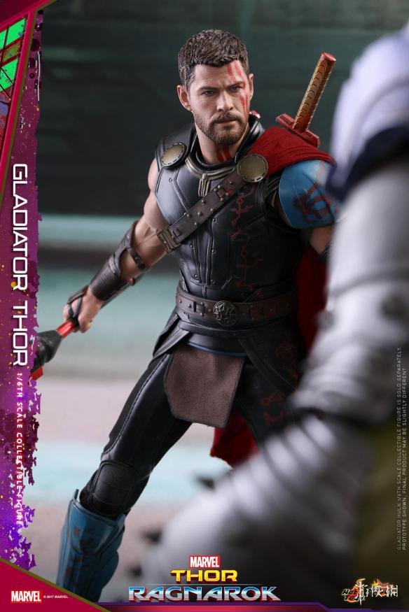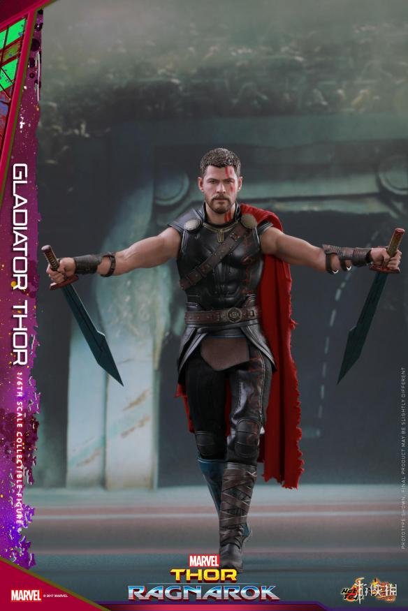 以上为普通版本可备有的造型与装备的设定,而豪华版本的《雷神3:诸神黄昏》角斗士雷神1:6比例珍藏人偶还特别配备在预告片中雷神与洛基齐心对抗外敌时所使用的一把Sakaar雷射枪和在最新的独立海报中他手握着的两把Einherjar宝剑 (一长一短)。