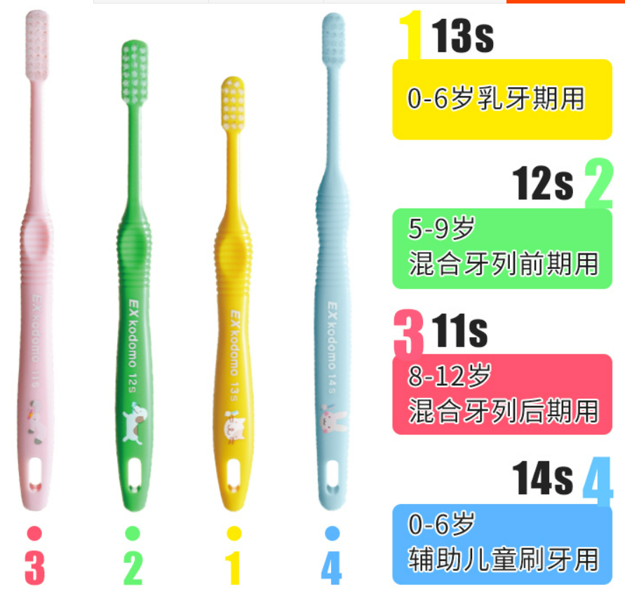 Ex kodomo分段更细致一些,其中特别区分出来“妈妈帮忙刷牙版“,在别的品牌我是没见过的,价格相对高一些。