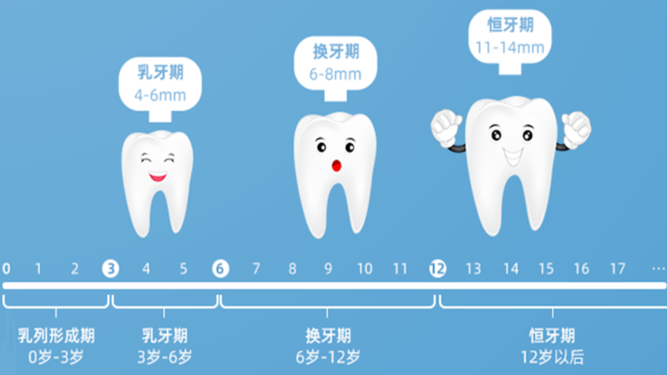 宝宝的牙齿发育会经历乳牙萌出—乳牙期-换牙期-恒牙期四个阶段,小牙牙和口腔尺寸慢慢变大,一成不变的牙刷大小和软硬,对过小的宝宝来说可能过大、过生硬,伤害牙龈,体验糟糕;对大宝宝又太小、太软,刷不干净。因此让牙刷跟着牙齿慢慢“生长”,始终处于最匹配的阶段,是最科学也最舒适的选择。