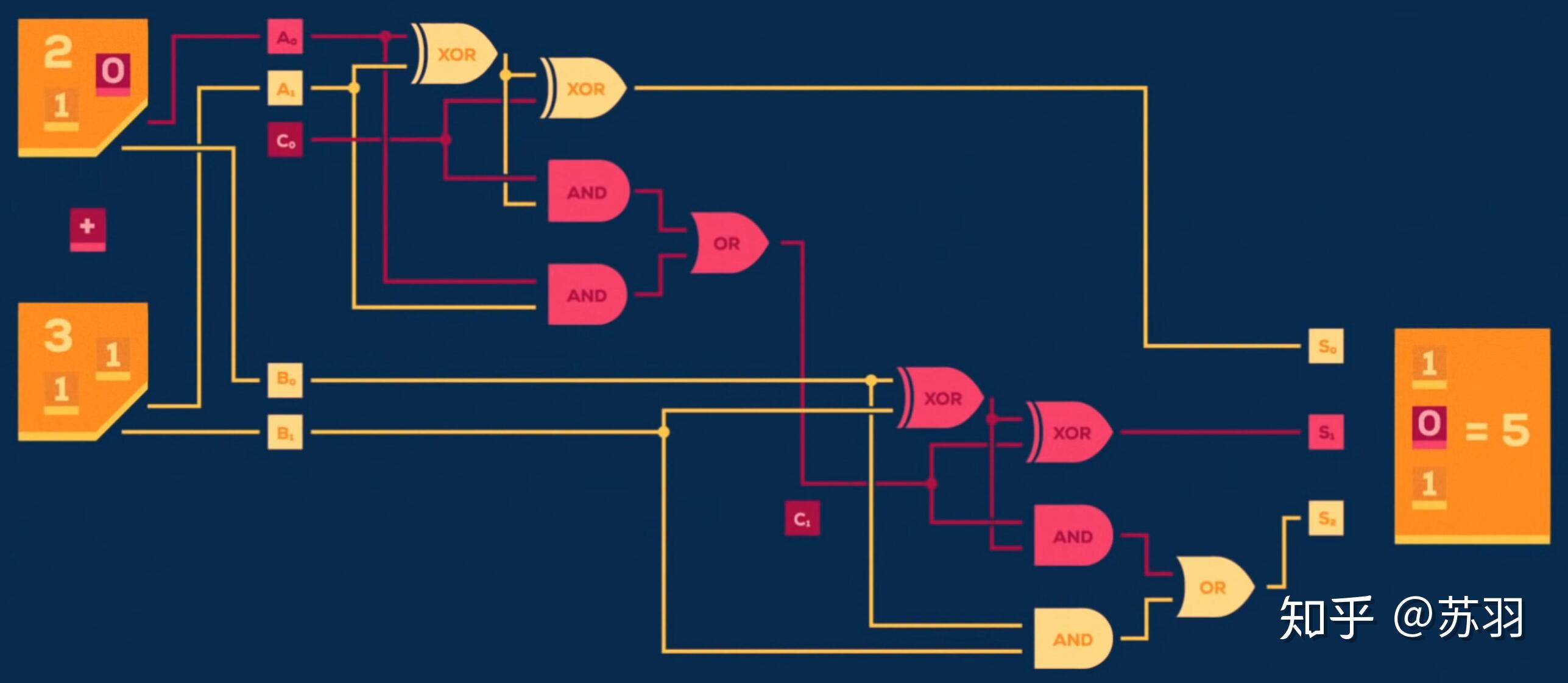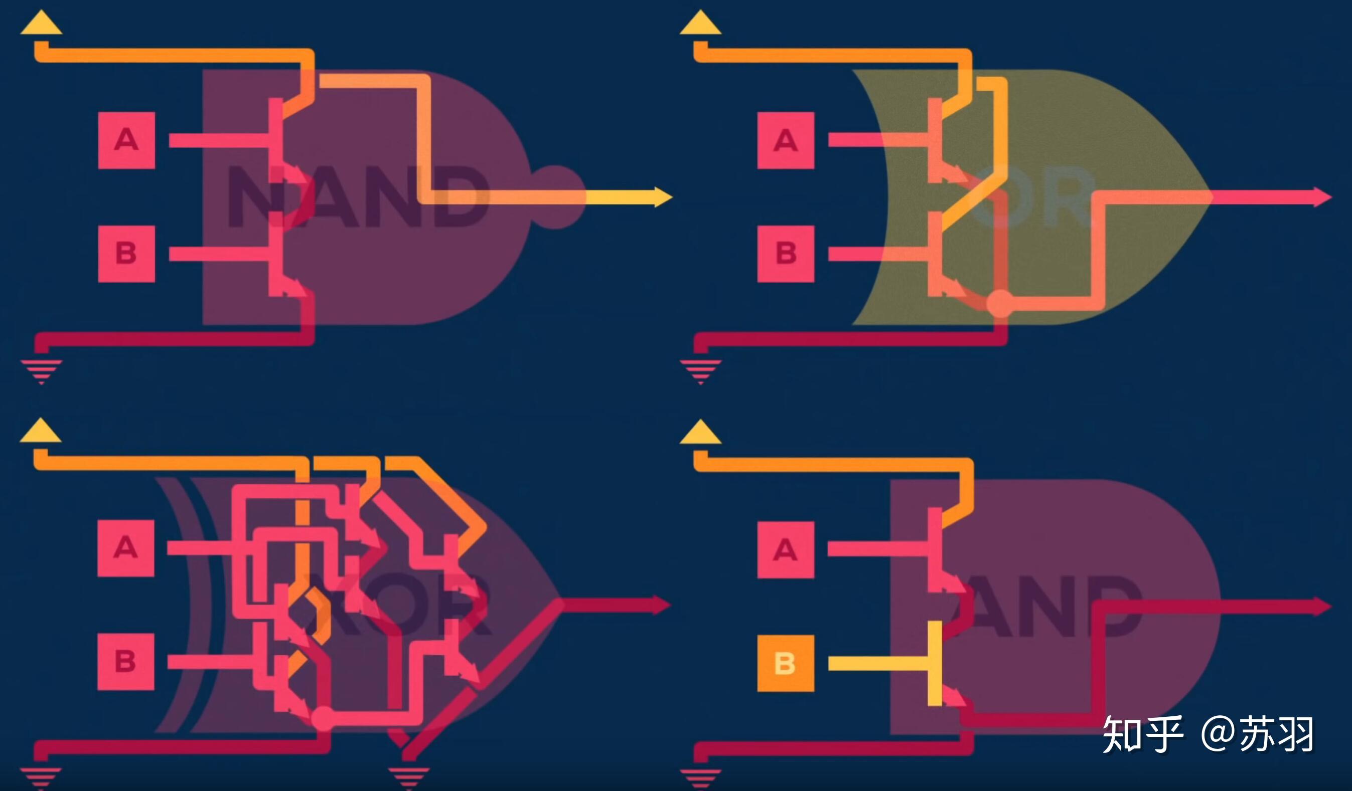 首先,我们知道计算机是由基本元器件组成的,即电路的逻辑门,而每个逻辑单元则是由晶体管组成,仅能完成一些诸如加减乘除的简单操作