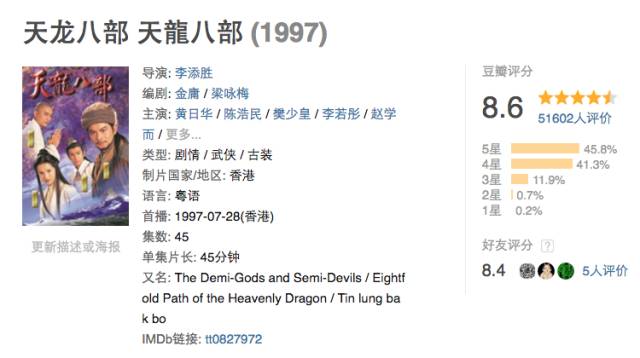 而时至1997香港回归这一年,数得上手的佳片已没有了台剧的影子——香港TVB涌现一大波武侠佳作。