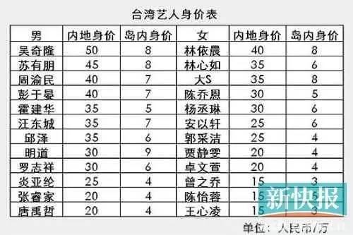 而在演员薪酬方面,在内地和岛内的片酬对比更是……无法直视