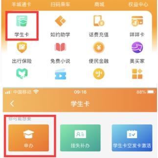 下载并打开羊城通APP,进入“学生卡”功能,点击“申办”。