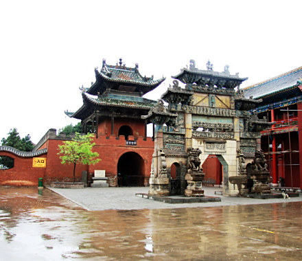 庙门:中门是专供帝王进出的“雉门”;东面是文职官员行走的“文经门”;西侧是甲胄之士通行的“武纬门”。雉门上嵌竖匾,书“关帝庙”三金字。雉门后的台阶上是戏台。
