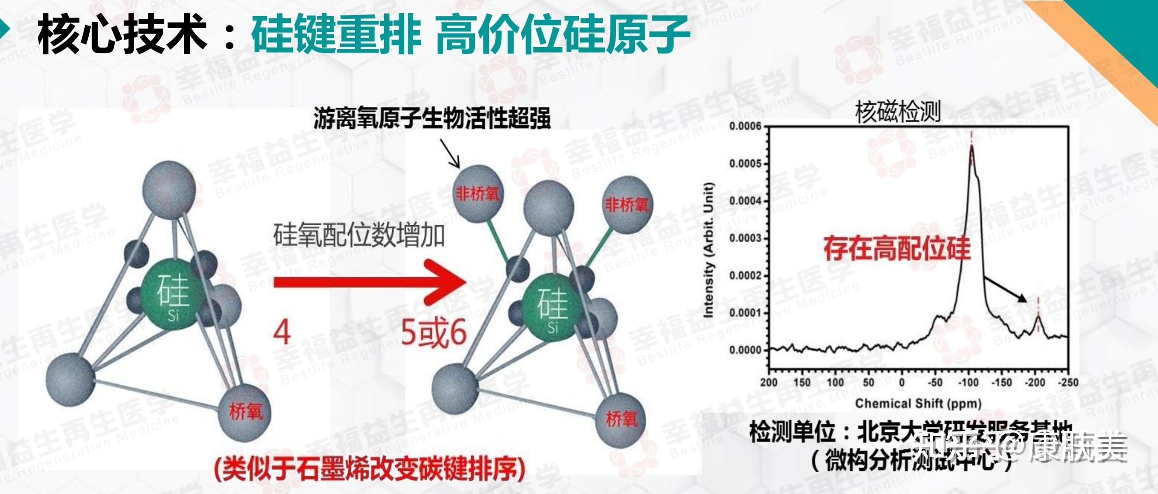 其次,原位再生修复:再生硅富含非桥氧,活性强,加速形成水硅凝胶层,吸附溶液中的Ca2+和po4 3-,促进三维网络的形成,有利于细胞有序攀爬,促进受损组织加速生长,可以让皮肤组织原位再生。 硅酮类疤痕膏只是提供了一个自愈环境,可以起到对疤痕的软化作用, 不能去疤和再生!