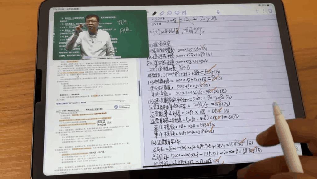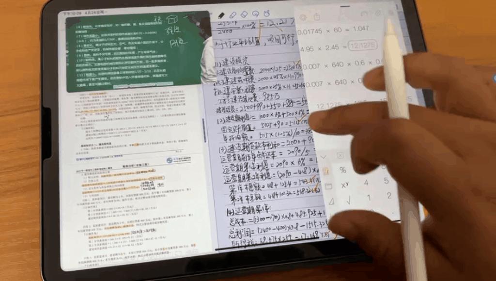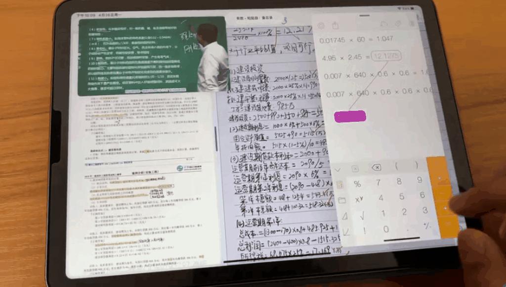 b.画中画+软件内分屏(笔记软件为Notability,可以实现软件内两文档分屏)