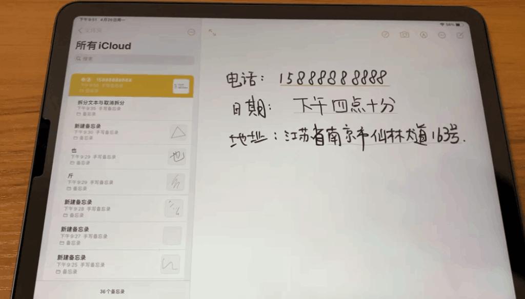 10.备忘录中手写的日期、地址、电话,按住可以添加日程、导航、拨打电话等。