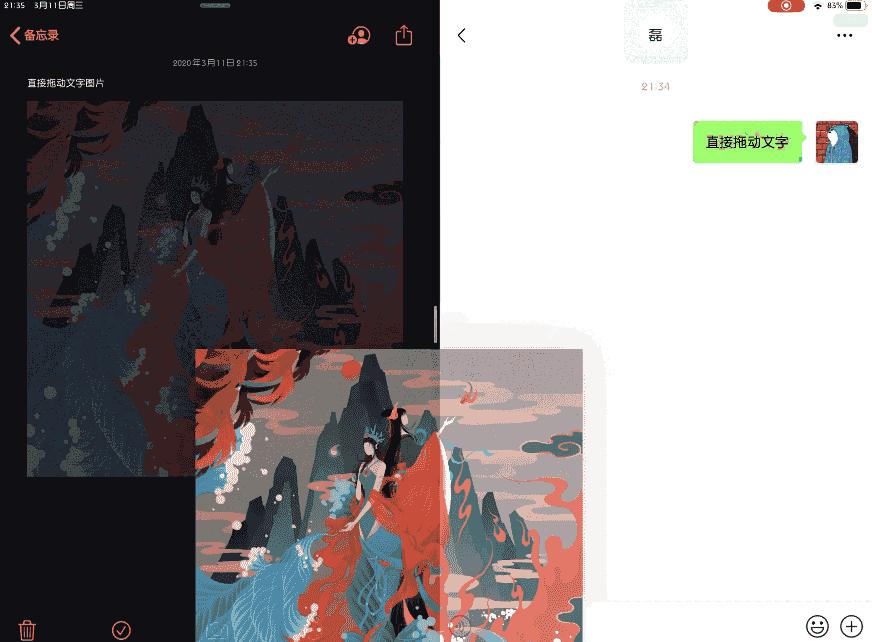 1.拖动文字内容到系统应用或者其他应用(微信),着实很方便。