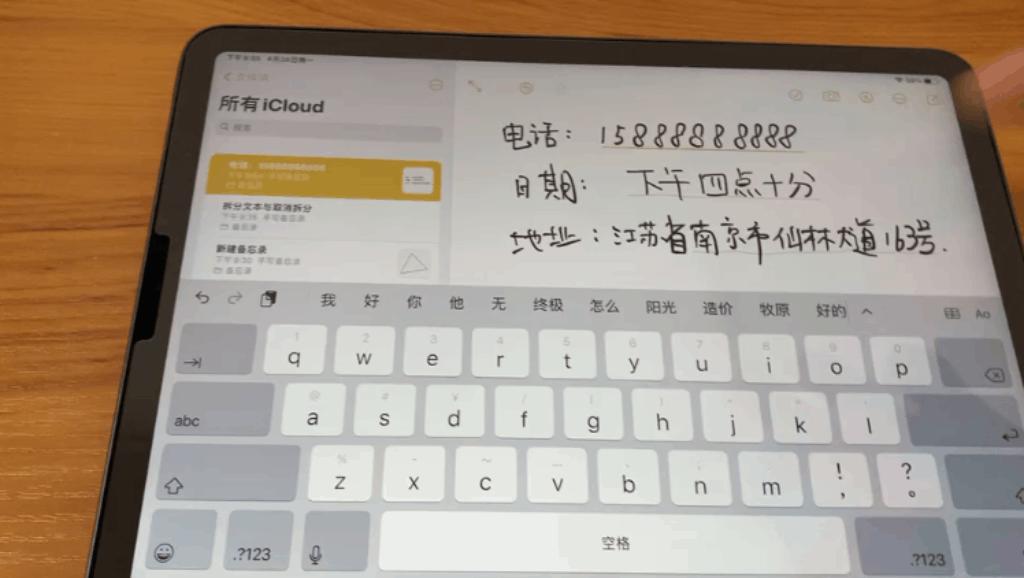 7.在文本输入中,用笔长按某个位置,可以手写文字并插入位置。