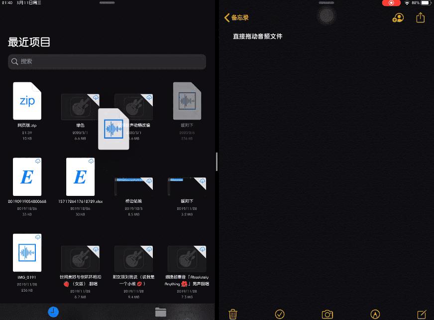 3.拖动文件(音频、zip压缩等)到系统其他应用(这个微信还不支持)