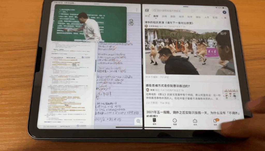 4.分屏学习,通过程序坞调出分屏程序,边看视频,边标准pdf课本。(有很多程序不支持分屏,或者支持不完美,后边会写,越狱加强,支持所有应用)