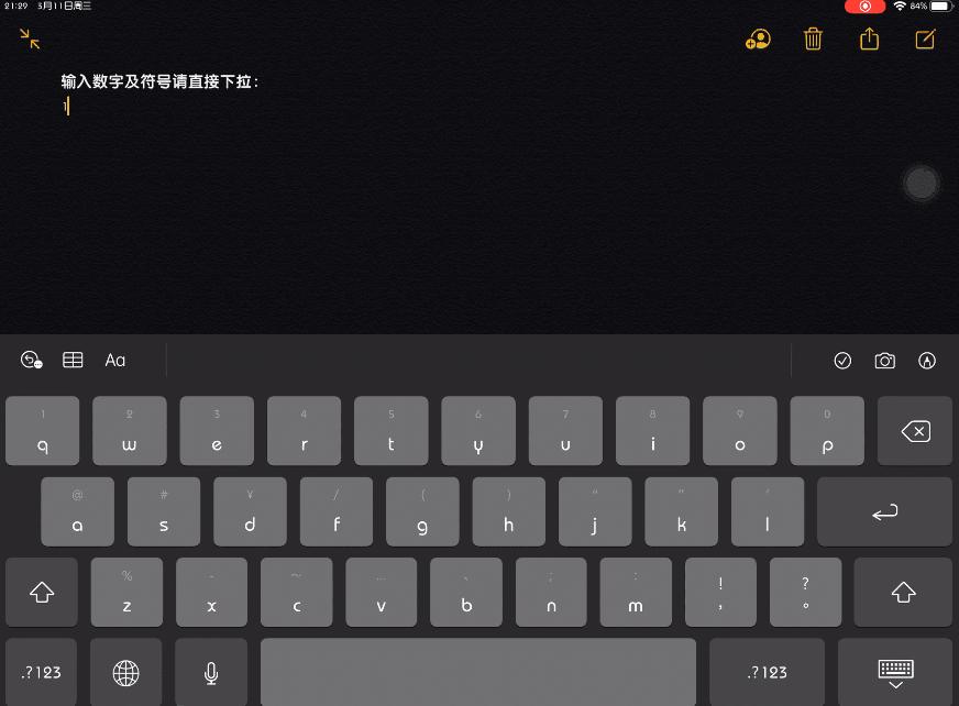 7.键盘技巧:双指外拉,会裂开,内聚会恢复原来大小。(经知友提醒个别pro机型没有这个)