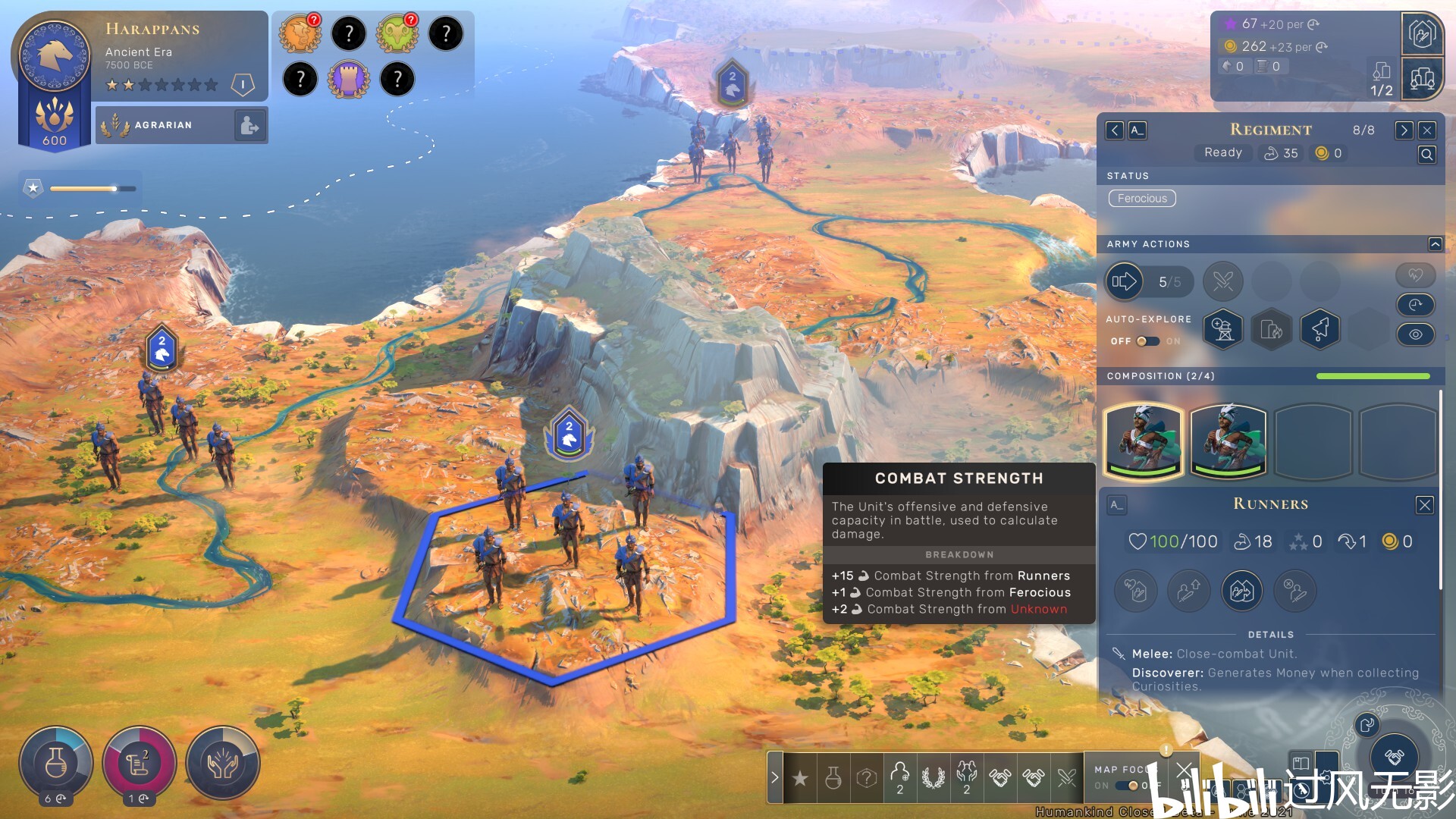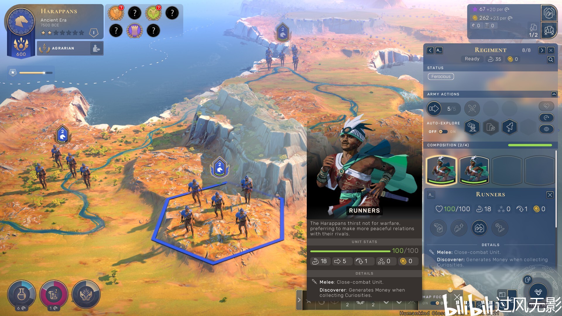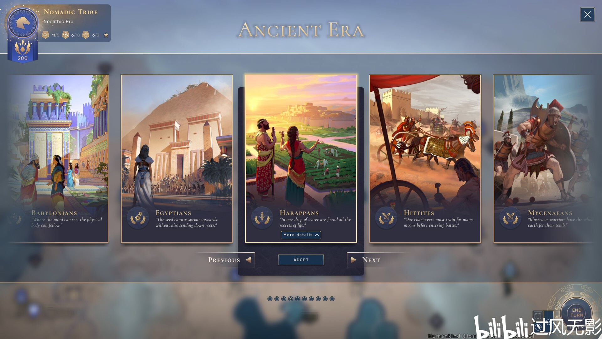 五测与之前测试不一样,最高难度AI终于有一定强度了,而且游戏中前期的各种数值大削,导致前期产能捉急,也没有之前那些测试那么好提产能了,各种发展都是比较受限的,并且高难度AI进时代速度也相当可以,这种情况下,哈拉帕依旧非常有强度,虽然强制劳役大削,但更快的人口增长在前期也是相当有用的,不仅能通过人口上工作槽位来增加一定产能或者科研,还能提升少量的影响力产出,同时EU也非常强力,虽然总会被AI在10t内抢掉,但其强度可保障就算丧失了石器时期爆单位的机会,也能让你快速发展,应该是五测中进古典时代最快的抉择了。