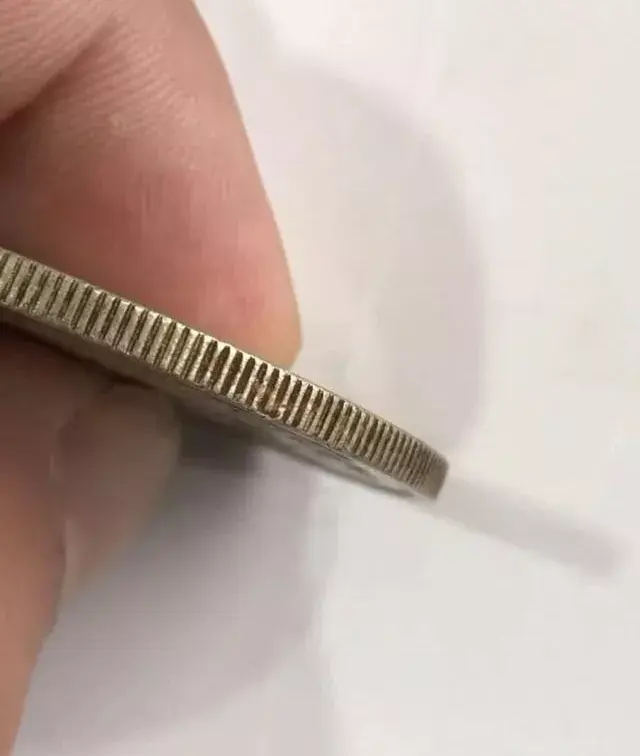 目前市场的真银假币,多是敲击成型的工艺,同以前挤压成型的工艺大不一样,仿制不出银币边齿面的弧形。用放大镜一照,高仿妖精便原形毕露。
