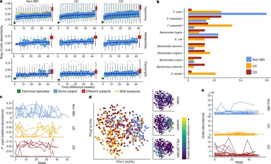 在HMP2研究中,炎症性肠病多组学数据库(IBDMDB)项目对来自5个临床中心的132个人进行了为期一年的追踪研究。