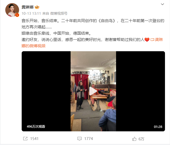 10月13日下午,龚琳娜官宣与德国老公老锣(Robert Zollitsch)离婚。画风不同的是,网友评论称,第一次见这么有仪式感和浪漫的分手。