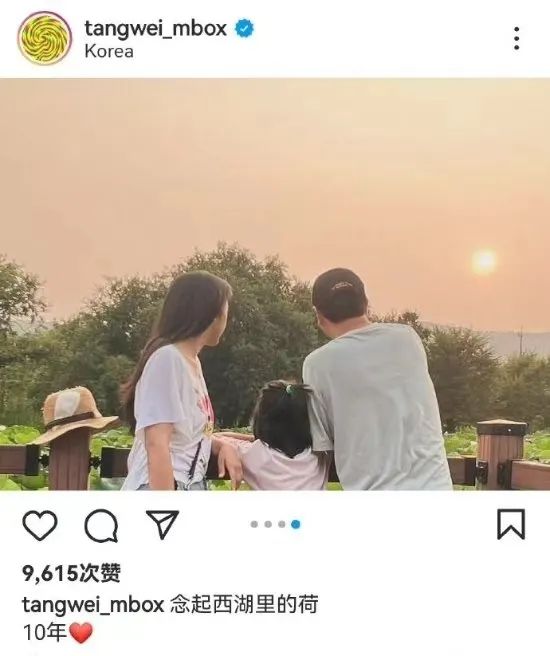今年7月,汤唯晒出一家三口背影照,庆祝与金泰勇结婚十周年:“念起西湖里的荷,十年❤”。照片中女儿扎着小辫子身影可爱,汤唯和女儿一起对着镜头拍照比心,一家人温馨满满!