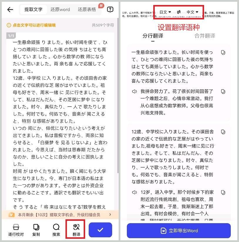 翻译完成后,支持译文和原图对照查看,只需要点击图片即可切换来回查看,非常方便!